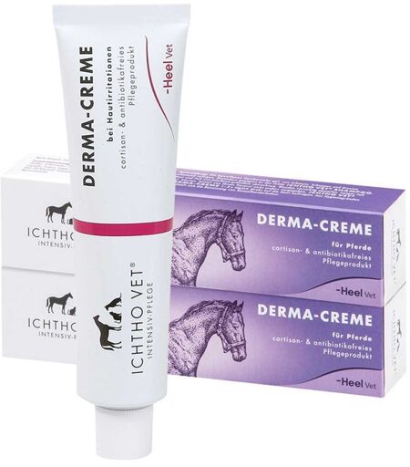 Wirkstoffe / Inhaltsstoffe / ZutatenInhaltsstoffe von Ichtho Vet Derma-Creme : Ictasol (helles sulfoniertes Schieferöl), Aqua, Petrolatum, Caprylic/Capric Triglyceride, Propylene Glycol, PEG-20 Glyceryl Stearate, Cetyl Alcohol, Glyceryl Monostearate.GegenanzeigenBei bekannter Überempfindlichkeit gegen einzelne Inhaltsstoffe sollte Ichtho Vet Derma-Creme nicht angewendet werden.DosierungAnwendungsempfehlung von Ichtho Vet Derma-Creme: Die betroffenen Hautbereiche ggf. von Schmutz, Schuppen und Krusten schonend reinigen.