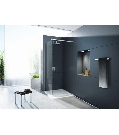 HO Duschabtrennung One&One 1100 Everclean Höhe 2100 mm, Haltestange eloxal silber, 5755.101401 One&One beeindruckt durch klare, bewusste Reduktion Manchmal sind die einfachen Lösungen die besten. So auch bei der Duschabtrennung von Hoesch: One & One. Freiheit pur. Genießen Sie ganz neue Raumdimensionen beim Duschvergnügen im geräumigen XXL-Format. Das Design beeindruckt durch klare, bewusste Reduktion: Sie betreten die hochwertige Echtglaskabine durch eine schlichte Öffnung. Die Haltestange kann vor Ort auf die gewünschte Länge gekürzt werden. Die Eck-Duschabtrennung One & One besteht aus einer 210 cm hohen Echtglas-Duschwand. Ohne Tür ist sie bequem über die seitliche Öffnung begehbar. Alle Profile und Halterungen sind in Chrome gehalten und werden minimal eingesetzt, um die schlichte Eleganz der Kabine zu unterstreichen. Das i-Tüpfelchen bildet die beidseitige EverClean-Veredelung des Glases für eine dauerhaft strahlend klare und lupenreine Glasabtrennung. Grundausstattung: Echtglas-Duschabtrennung (8mm) mit EverClean-Beschichtung Wandprofile und Haltestange verchromt Verstellbereich: Wandanschlussprofil +/- 10 mm Die Haltestange kann vor Ort auf die gewünschte Länge gekürzt werden Profil kombiniert mit einem Handtuchhaken weitere Details: Grundausstattung: Echtglas-Duschabtrennung (8mm) mit EverClean-Beschichtung Wandprofile und Haltestange verchromt Verstellbereich: Wandanschlussprofil +/- 10 mm Die Haltestange kann vor Ort auf die gewünschte Länge gekürzt werden Profil kombiniert mit einem Handtuchhaken Wasseranschlüsse Beim Anschluss an die Trink Wasserinstallation muss bauseitig oder vom Anwender eine den nationalen Anforderungen entsprechende Sicherungseinrichtung vorgeschaltet werden. Wandausbrüche müssen mit dauerelastischem Fugendicht abgedichtet sein. Die Anlage muss nach DIN 1988 gespült sein. In der Hausinstallation ist bauseits ein Schmutzfänger vorzusehen. Aufstellplatz/Aufstellraum: - Die Duschabtrennung One&One ist für die Aufstellung in der Ecke oder Vorwand ausgelegt. - Die Duschabtrennung One&One ist für die Installation an gemauerten Wänden entworfen worden. Verstärken Sie andere Wandkonstruktionen (Holz, Gipskarton), um eine sichere Befestigung zu gewährleisten. - Bitte beachten Sie, dass im Bereich der Duschkabine geeignete Materialien als Wandverkleidung benutzt werden müssen. Eine Untergrundbehandlung nach Feuchtigkeitsbeanspruchungsklasse FKB 2 ist erforderlich. - Die Wände müssen vor der Montage auf der gesamten Kabinenhöhe fertig gefliest sein. - Der Boden am Aufstellort muss vollkommen eben sein. - Eine Be- und Entlüftung sowie eine ausreichende Raumluftentfeuchtung des Aufstellraumes sind sicherzustellen. Gegebenenfalls ist eine geeignete Abluftvorrichtung anzubringen, um den beim Duschen entstehenden Wasserdampf kontrolliert abzuführen (DIN 18017, DIN 1946 etc.). Verwendungshinweis: benötigte Werkzeuge: Zollstock, Wasserwaage, Bleistift, Schraubenzieher, Silikon, Teppichmesser, Metallsäge,... ...