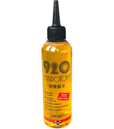 920 Hairoton Hair Tonic mit neuer, verbesserter Formel (mit Coffein) beugt Haarausfall und Kopfjucken vor und hilft bei Schuppen. Es ist das Reslutat jahrzehntelanger chinesischer Forschungsarbeit und wird in China hergestellt. Hairoton Hair Tonic ist ein Kompositum wirkungsvoll aufeinander abgestimmter Bestandteile und sollte mehrmals wöchentlich mit Kreisbewegungen in die Kopfhaut einmassiert werden. Pflegt die KopfhautKräftigt die DurchblutungBeseitigt KopfjuckenHilft bei hartnäckigen SchuppenBeugt Haarausfall vor ...