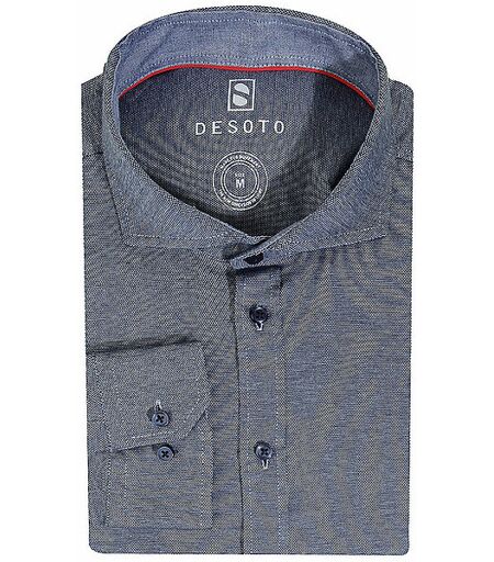 Modisches Jerseyhemd aus weicher Qualität mit Melangeeffekt Angenehmer GriffHaifischkragenLangarmManschette mit einem KnopfFarbe: MarineAbgerundetes SaumendeSchmale PassformAngenehm zu tragenBügelfreiMaterial: 100% Baumwolle ...