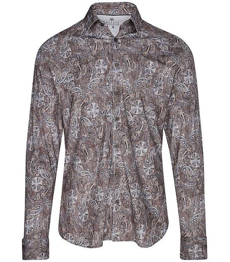 Herren Hemd aus Baumwoll-Jersey Kentkragen Schließt mit Knopfleiste Langarm mit Manschette Paisleymuster Schmal geschnitten Bügelfrei Farbbezeichnung: Braun / Navy Material: 100% Baumwolle ...