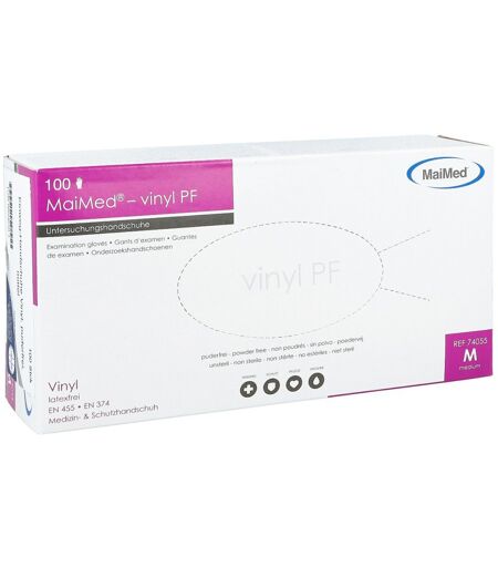 Maimed Handschuhe Vinyl puderfrei unsteril mittel können in Ihrer Versandapotheke www.juvalis.de erworben werden. ...