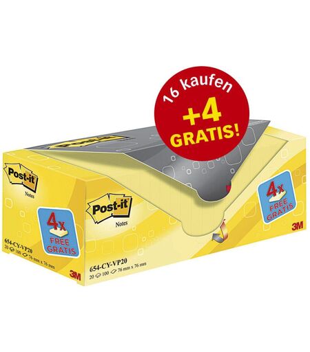 Post-it® Haftnotizen 7,6 x 7,6 cm, 16 Blöcke + GRATIS 4 Blöcke 654Y-20