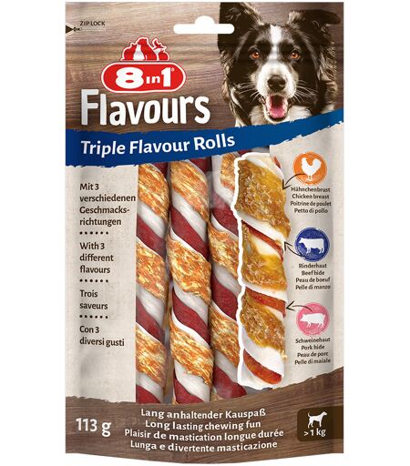 3x3 Stück 8in1 Triple Flavour Rolls Kaustangen Huhn Hundesnacks