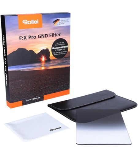 Rollei F:X Pro Medium Rechteckfilter Grauverlaufsfilter 100mm Der Rollei F:X Pro Medium GND ist ein Grauverlaufsfilter, auch Graduated Neutral Density Filter genannt. Bei Verlaufsfiltern läuft die Tönung (Coating) zu einer Seite aus. Das Wort ‚Medium‘ steht hierbei dafür, dass die Intensität der Tönung von einem Ende des Filters zur Mitte hin mittelmäßig stark ausläuft und nicht etwa mit einem sehr harten Schnitt (Hard GND) oder sehr weich (Soft GND) endet. Mustergültige ...
