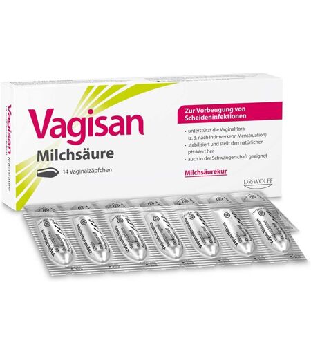 Anwendungsgebiet von Vagisan Milchsäure VaginalzäpfchenDer Vaginalbereich der Frau ist sehr empfindlich. Der natürliche pH-Wert der Scheide kann schnell gestört werden. Bakterielle Infektionen und andere Beschwerden sind dann die Folge. Vagisan Milchsäure Vaginalzäpfchen werden zur Erhaltung und Wiederherstellung eines natürlichen pH-Wertes in der Scheide verwendet. Vagisan Milchsäure Vaginalzäpfchen können auch zur Vorbeugung von Scheideninfektionen oder in Ergänzung zu einer medikamentösen Behandlung von Scheideninfektionen eingesetzt werden.Wirkungsweise von Vagisan Milchsäure VaginalzäpfchenVagisan Milchsäure Vaginalzäpfchen enthalten Milchsäure. Durch die Ansäuerung des vaginalen Milieus mit Milchsäure wird das Wachstum der Scheiden-typischen Bakterien (natürlich vorkommende Milchsäurebakterien) unterstützt und wirkt sich zugleich ungünstig auf das Wachstum von Krankheitserregern aus. Wirkstoffe / Inhaltsstoffe / ZutatenEin Vagisan Milchsäure Vaginalzäpfchen enthält: 0,167 g (S)-Milchsäure, 0,100 g Natrium-(S)-lactat-Lösung (entspricht 40 mg Milchsäure). Sonstige Bestandteile: Macrogol 1500 und 6000.GegenanzeigenBei bekannter Überempfindlichkeit gegenüber einem der oben genannten Inhaltsstoffe sollte dieses Produkt nicht angewendet werden.DosierungFühren Sie ein Vaginalzäpfchen 1-mal täglich am Abend vor dem Schlafengehen möglichst tief in die Scheide ein. Ziehen Sie die beiden Folien an der Spitze des Zäpfchens auseinander, um das Vaginalzäpfchen aus dem Folienstreifen zu entnehmen. Falls die Scheide relativ trocken sein sollte, hilft es das Vaginalzäpfchen vor dem Einführen unter fließendem Wasser gut anzufeuchten. Es ist ratsam während der Anwendung eine Slipeinlage zu verwenden, da durch die besonders gute Löslichkeit der Vaginalzäpfchen gelegentlich ein verstärkter wässriger Ausfluss auftreten kann. EinnahmeBei jeder Anwendung verfahren Sie bitte wie folgt:Das Vaginalzäpfchen wird am Abend m ...