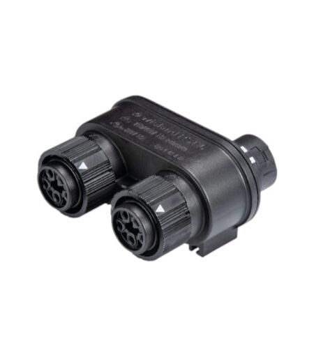 Der RST® MINI Verteilerblock ist die ideale Lösung für eine sichere und zuverlässige Stromverteilung in anspruchsvollen Umgebungen. Mit seinem kompakten Design und der robusten Bauweise ermöglicht er eine effiziente Aufteilung der Stromversorgung von einem Eingang auf zwei Ausgänge. Dank seiner hohen Schutzart IP66/68/69 ist dieser Verteilerblock vollständig wasser- und staubdicht, was ihn perfekt für den Einsatz im Außenbereich, in der Veranstaltungstechnik oder in industriellen Anwendungen macht. Die einfache Montage über die Befestigungsplatte sowie die mechanische und farbliche Kodierung sorgen für eine schnelle und fehlerfreie Installation. Technische Daten System: RST® MINI - Verteilerblock, Schutzart: IP66/68(3 m, 2 h)/69, Anschlüsse: 1x Eingang, 2x Ausgänge, Polzahl: 5-polig, Bemessungsspannung: 400 V, Bemessungsstrom: 16 A, Bemessungsstoßspannung: 4 kV, Werkstoff Gehäuse: PA66, V2, Gehäusefarbe: Schwarz, Dichtungsmaterial: NBR, Halogenfrei: Ja, Abmessungen: 60 x 69,5 x 36,5 mm ...