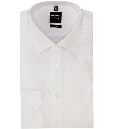 Das Herrenhemd verfügt über einen verstärkten Kentkragen und lange Ärmel mit Ärmelmanschetten, die jeweils mit zwei Knöpfen und einer kleinen Logostickerei versehen sind. Das Hemd ist unifarben und hat einen sehr schmalen Schnitt für einen eleganten Look. Es erfüllt den Öko-Tex Standard und bietet einen hohen Tragekomfort dank des Stretchanteils, der eine bequeme Passform und Bewegungsfreiheit gewährleistet. Material: 97% Baumwolle, 3% Elasthan Pflege: Formbeständig und leicht zum Bügeln Die Marke OLYMP ist Mitglied der Fair Wear Foundation. ...