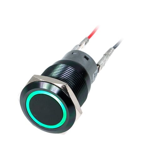 Phobya Vandalismusschalter 19mm Aluminium schwarz, grün Ring bel...