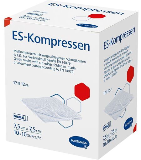 Hartmann Es-Kompressen steril 7,5x7,5 cm 12fach Großpackung 10x10 St Kompressen