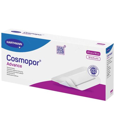 Anwendungsgebiet von Cosmopor Advance 10x25 cmCosmopor Advance 10x25 cm – Extra saugfähig für mehr Sicherheit und KomfortCosmopor Advance 10x25 cm bietet Ihnen eine zuverlässige Lösung für die moderne Wundversorgung – speziell dort, wo hohe Saugkraft und Tragekomfort gefragt sind. Der sterile, selbstklebende Wundverband besteht aus einem weichen, hautfreundlichen Trägervlies und ist mit einem hoch absorbierenden Wundkissen ausgestattet.Dank der innovativen DryBarrier® Technologie wird Wundexsudat effektiv aufgenommen und sicher im Inneren des Kissens eingeschlossen – selbst bei Druckbelastung. Ein Zurücknässungseffekt wird dadurch nahezu ausgeschlossen.Diese durchdachte Kombination aus starker Saugfähigkeit und zuverlässigem Nässeschutz sorgt dafür, dass der Verband länger auf der Wunde verbleiben kann. Ideal für die postoperative Versorgung – für ein sauberes, sicheres und angenehmes Heilungsklima.HinweiseTrocken & vor direkter Sonneneinstrahlung geschützt lagern Cosmopor Advance 10x25 cm können in Ihrer Versandapotheke www.juvalis.de erworben werden. ...
