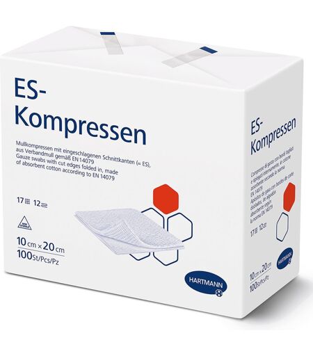 ES-Kompressen unsteril 12fach 10 x 20 cm Größe Wundauflage 10 x 20 cm HARTMANN ES-Kompressen sind der Klassiker unter den Mullkompressen. Die eingeschlagenen Schnittkanten verhindern das Risiko, dass störende Randfäden sich ablösen und in die Wunde gelangen. Die Kompresse ist mehrfach aufklappbar. So besteht die Möglichkeit verschieden große Körperstellen vollständig abzudecken. Zudem kann die ES-Kompresse neben der allgemeinen Funktion der Wundabdeckung auch als Trägermaterial für Salbe dienen, oder eine polsternde Funktion im Rahmen der Wundversorgung einnehmen. Weich und anschmiegsam: für ein angenehmes Gefühl auf der Haut Vielseitig: Zum Reinigen, Abdecken und Polstern geeignet Eingeschlagene Schnittkanten (ES): Diese verhindern das Ablösen störender Randfäden ...