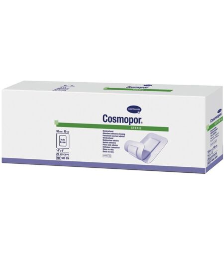 Cosmopor® steril 10 x 35 cm Größe Wundauflage: 10 x 35 cm Bei Cosmopor® Steril handelt es sich um einen selbstklebenden sterilen Wundverband zum Schutz von postoperativen/primär heilenden Wunden und zur Aufnahme von Exsudat (für normal nässende Wunden). Er kann auch zum Schutz von Wunden nach Behandlungen wie Desinfektion, Wundsäuberung, usw. verwendet werden. Weicher und atmungsaktiver Wundverband, selbstklebend Hautfreundlich, kein Verkleben Postoperative Wundversorgung und Bagatellverletzungen Anwendung: Für die postoperative Wundversorgung, aber auch zur sterilen Versorgung von Bagatellverletzungen, z. B. im Rahmen der Ersten Hilfe; bei Patienten mit besonders sensibler Haut. ...