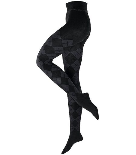 Damen Strickstrumpfhose aus hochwertigem Bio-Baumwoll-Mix Argyle-Muster Modische Filetstruktur Abgesetztes Höschenteil mit breitem Bündchen Anschmiegsame Baumwolle Farbbezeichnung: Black Material: 67% Baumwolle (Bio), 29% Polyamid, 4% Elasthan ...