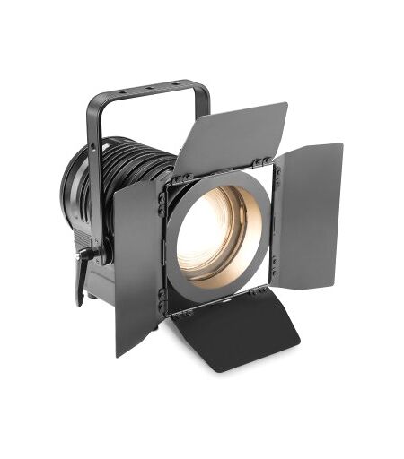 Theater-Spot mit Fresnel-Linse und warmweißer 180 W LED in schwarzem Gehäuse: Leistungsstarke warmweiße 180 W LED, Fresnel-Linse, Stufenloser manueller Zoom für 14° - 38° Abstrahlwinkel, RDM-fähig, 67.500 Lux @ 1 m / 6.600 Lumen, 3.100 K Farbtemperatur, CRI >96 für naturgetreue Farbwiedergabe, Flackerfreie Projektion, Robustes Metallgehäuse mit temperaturgesteuertem Lüfter, Inklusive drehbarem Flügelbegrenzer und Farbfilterrahmen, Der Cameo TS 200 WW ist ein vielseitiger Theater-Spot mit Fresnel-Linse und manuellem Zoom, das erlaubt, den Abstrahlwinkel seines gleichmäßigen, weich umrandeten Lichtstrahls stufenlos von 14° auf weite 38° zu verstellen. Die 180 Watt starke warmweiße LED des RDM-fähigen Scheinwerfers mit 3.100 Kelvin Farbtemperatur erzielt eine hohe Lichtstärke von 67,500 Lux bei 1 m Entfernung. Mit einem extrem hohen Farbwiedergabeindex von 96 zeigt der Scheinwerfer Farben natürlich und unverfälscht. . Zu den DMX-Funktionen des Spots gehören ein schnelles Strobe, das sich von 1 - 20 Hz einstellen lässt, und verschiedene Dimmerkurven mit 16-Bit Auflösung. Wählbare Wiederholraten bis 25 kHz sichern einen flackerfreien Betrieb. Der TS 200 WW besitzt ein robustes Metallgehäuse mit temperaturgesteuertem Lüfter, ein Display mit 4 Knöpfen dient zur bequemen Konfiguration. 3- und 5-polige DMX-Anschlüsse und Power-Twist-Netzbuchsen ermöglichen ein problemloses Hintereinanderschalten. Zum Lieferumfang gehören eine drehbare Torblende zum Begrenzen des Lichtkegels und ein Farbfilterrahmen. Technische Daten: Produktart: LED PAR Scheinwerfer, Typ: Theater Spot, Farbspektrum: warmweiß, LED Anzahl: 1, Farbtemperatur: 3100 K, CRI: 97, LED Typ: warmweiß 180 W, Wiederholrate: 650 Hz, 1530 Hz, 3600 Hz, 25 k Hz, Abstrahlwinkel: 14 - 38 °, DMX Eingang: XLR 3-Pol male, DMX Eingang: XLR 5-Pol male, DMX Ausgang: XLR 3-Pol female, DMX Ausgang: XLR 5-Pol female, Betriebsarten: DMX 512, Stand Alone, Master/Slave, DMX Modus: 1-Kanal, DMX Modus: 3-Kanal, DMX Modus: 5-Kanal, DMX Funktionen: 16-Bit Dimmer, DMX Funktionen: Dimmer Curve, DMX Funktionen: Geräteeinstellungen, DMX Funktionen: Strobe, Flash Rate Strobe: 1 Hz - 20 Hz, Standalone Modi: Dimmer, Bedienelemente: Down, Bedienelemente: Enter, Bedienelemente: Mode, Bedienelemente: Up, Anzeigeelemente: LC-Display, Stromversorgung: 100 V AC - 240 V AC / 50 - 60 Hz, Leistungsaufnahme: 200 W, Stromversorgungsanschluss: Blauer und Weißer Power Twist, Gehäusematerial: Metall Druckguss, Gehäusefarbe: schwarz, Kühlung: temperaturgesteuerter Lüfter, Betriebstemperatur: 0 - 40 °C, Beleuchtungsstärke: 67500 lx @ 1 m, Lichtstrom: 6600 lm, Breite: 320 mm, Höhe: 370 mm, Tiefe: 310 mm, Gewicht: 7,4 kg, Zubehör (im Lieferumfang): Farbfilterrahmen, Zubehör (im Lieferumfang): Flügeltor ...