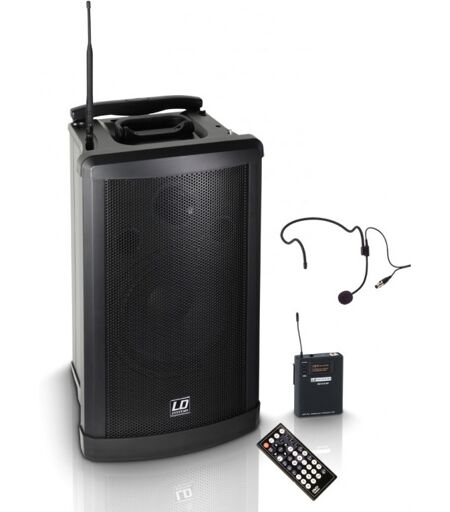 Mobiler PA Lautsprecher mit Headset Mikrofon: Der Roadman 102 HS von LD Systems ist ein mobiles und kompaktes Sound System mit HeadsetDer Roadman 102 HS: ist eine portable und mobile Beschallungslösung: mit integriertem Akku. Das System eignet sich perfekt für alle Solo Entertainer, Kirchen, Schulen, Konferenzen oder Präsentationen bei denen es auf Vielseitigkeit: ankommt. Zur Standardaustattung des Roadman gehört ein CD/MP3/USB/SD Player sowie eine Wireless Mikrofon Einheit mit Headset und Belptpack. Optional kann eine zweite Wireless Einheit eingebaut werden. Technische Daten: Produktart: Akkubetriebene PA Lautsprecher, Ausführung: Set mit Taschensender und Headset Mikrofon, Größe Tieftöner: 10 ", Größe Tieftöner: 254 mm, Magnet Tieftöner: Ferrit, Marke Tieftöner: Custom Made, Größe HF Treiber: 1 ", Größe HF Treiber: 25,4 mm, Magnet HF Treiber: Ferrit, Marke HF Treiber: Custom Made, Verstärker: Class D, Leistung (RMS): 80 W, Leistung (Peak): 320 W, Frequenzgang: 70 - 16.000 Hz, SPL (1 W/1 m): 95 dB, Max. SPL: 115 dB, Schutzschaltungen: Kurzschluss, Bedienelemente: Audio-Link Set (Master / Slave), Bedienelemente: Audio-Link Slave Volume, Bedienelemente: Line Gain, Bedienelemente: Master, Bedienelemente: Power, Bedienelemente: Treble, Bedienelemente: Umschalter Speech / Music (Mic / Line 1), Bedienelemente: Umschalter Speech / Music (Mic / Line 2), Bedienelemente: Voice Priority On / Off, Bedienelemente: Volume Mic 1, Bedienelemente: Volume Mic 2, Anzeigeelemente: Lade- / Batteriestatus, Anzeigeelemente: Power, Media Player unterstützte Medien: Audio-CD, unterstützte Medien: CD-R, unterstützte Medien: CD-R/W, unterstützte Medien: SD Card, unterstützte Medien: USB-Stick, unterstützte Formate: Audio-CD, unterstützte Formate: MP3-CD, unterstützte Formate: MP3-Datei, unterstützte Formate: WMA-CD, unterstützte Formate: WMA-Datei, Bedienelemente Media Player: CD Auswurf, Bedienelemente Media Player: Mode (CD / SD / USB), Bedienelemente Media Player: Mute, Bedienelemente Media Player: Nächster Titel, Bedienelemente Media Player: Ordner -, Bedienelemente Media Player: Ordner +, Bedienelemente Media Player: Play / Pause, Bedienelemente Media Player: Power / Volume, Bedienelemente Media Player: Programm, Bedienelemente Media Player: Repeat, Bedienelemente Media Player: Shuffle, Bedienelemente Media Player: Stop, Bedienelemente Media Player: Vorheriger Titel, Anzeigeelemente Media Player: beleuchtetes Multifunktions LC-Display, Line-Eingänge: 3, Line-Eingangsanschlüsse: 2 x Cinch, Line-Eingangsanschlüsse: Audio-Link Input XLR, weiblich, Mic-Eingänge: 2, Mic-Eingangsanschlüsse: 6,3 mm Klinke, Mic-Eingangsanschlüsse: XLR, Line-Ausgänge: 3, Line-Ausgangsanschlüsse: 2 x Cinch, Line-Ausgangsanschlüsse: Audio-Link Output XLR, männlich, Lautsprecherausgänge: Speaker Out Switched, Lautsprecherausgänge: Speaker Out Unswitched, Lautsprecherausgangsanschlüsse: 6,3 mm Klinke, Stromversorgung: Transformator, Betriebsspannung: 200 V AC - 250 V AC, Betriebsspannung: 24 V... ...