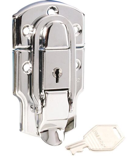 Aufbauschloss groß verchromt abschließbar: Technische Daten: Produktart: Verschlüsse, Typ: Aufbauschlösser, Material: Stahl, Oberfläche: verchromt, Ø Befestigungslöcher: 4,2 mm, Abschließbar: Ja, Breite: 50 mm, Höhe: 90 mm, Gewicht: 0,096 kg ...