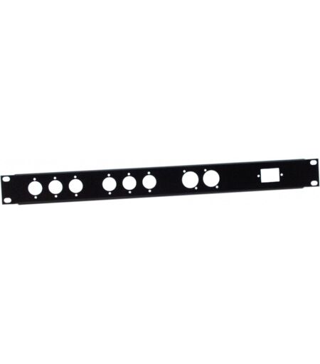 19" U-Rackblende 1 HE, universal: U-Rackblende für 6 x XLR male, 2 x XLR female und 1 x Euro-Netzbuchse (Amp-Rack-Bestückung) Technische Daten: Produktart: 19" Rackblenden, Material: Stahl, Oberfläche: pulverbeschichtet, Farbe: schwarz, Höhe: 1 HE, Breite: 19 ", Materialstärke: 1,5 mm, Gewicht: 0,3 kg ...
