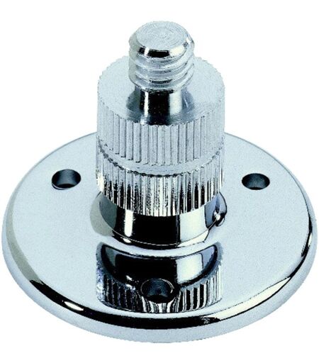 Schwanenhals Montagegrundplatte: Schwanenhals-Montagegrundplatte mit 3/8" Gewinde zur Aufnahme von Mikrofon-Schwanenhälsen, wie z.B. von Gravity. Technische Daten: Produktart: Mikrofonzubehör, Material: Stahl, Oberfläche: verchromt, Farbe: silber, Höhe: 30 mm, Sockeldurchmesser: 45 mm, Anschluss: 3/8''-Gewinde, Gewicht: 0,028 kg ...