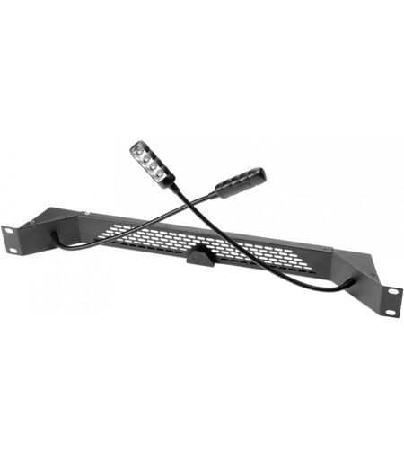 COB-LED-Rackleuchte mit zwei Schwanenhälsen und Farbwahl: 1 HE COB-LED-Rackleuchte mit zwei 30,5 cm Schwanenhälsen, Rot, grün, blau, warmweiß oder kaltweiß einstellbar, Farbwahl-Speicher, Montage auf Rackfront oder Rückseite, Inkl. Netzadapter, Die 87463 Ultra C ist eine COB-LED-Rackleuchte mit 1 HE, Farbwahl und Farbwahl-Speicher. Die beiden flexibel ausrichtbaren Schwanenhälse sind mit COB-LEDs bestückt, die eine rote, grüne, blaue, warm- oder kaltweiße Beleuchtung gestatten. Die 87463 Ultra C kann auf der Vorder- oder Rückseite von Racks montiert werden und wird mit einem 12 V DC Netzadapter zur Spannungsversorgung geliefert. Technische Daten: Produktart: 19" Rackzubehör, Bauform: 19" / 1 HE, Betriebsspannung: 12 V DC, Leuchtmittel: COB LED, Leuchtmittel Farbe: blau, Leuchtmittel Farbe: grün, Leuchtmittel Farbe: kaltweiß, Leuchtmittel Farbe: rot, Leuchtmittel Farbe: warmweiß, Beleuchtungsstärke: 424, Stromzuführung: Kleinspannungsbuchse, Kabellänge: 2 m, Gehäusematerial: Metall, Farbe: schwarz, Zubehör (im Lieferumfang): Netzteil, Breite: 485 mm, Höhe: 44 mm, Tiefe: 60 mm, Gewicht: 0,414 kg, Weitere Eigenschaften: Farbwahlschalter, Weitere Eigenschaften: Memoryfunktion ...