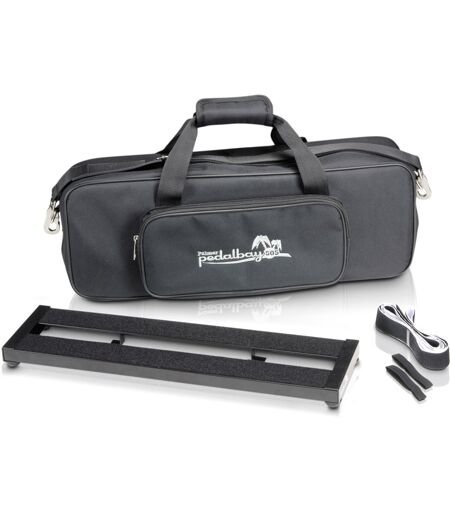 Kompaktes Pedalboard mit gepolsterter Tragetasche 50 cm: Extrem robust, Leichte Aluminium-Konstruktion, Inklusive Klettband (vormontiert), Gepolsterte Tragetasche, Universelles Pedalboard aus Aluminium für die Unterbringung aller handelsüblichen Bodeneffekte. Die Querstreben sind bereits mit Klettband (Flausch) bezogen, eine ausreichende Menge Hakenband wird mitgeliefert. Auf der Unterseite bietet das Pedalboard 4 praktische Befestigungshaken an denen mittels der im Lieferumfang enthaltenen Gummizüge die einfache Unterbringung von Peripheriegeräten, wie zum Beispiel ein Netzteil, sichergestellt ist. Mit im Set enthalten ist auch ein hochwertiges gepolstertes Softcase mit Zubehörfach und Schultertragegurt. Technische Daten: Produktart: Pedalboards, Material: Aluminium, Oberfläche: pulverbeschichtet, Breite Querstreben: 50 mm, Breite: 500 mm, Höhe: 35 mm, Tiefe: 135 mm, Gewicht Pedalbay: 0,63 kg, Gewicht: 2,46 kg, Zubehör (im Lieferumfang): 2x schwarze Gummizüge, Zubehör (im Lieferumfang): ca. 1,5m Hakenband, Zubehör (im Lieferumfang): Gepolsterte Tragetasche mit Schultergurt ...
