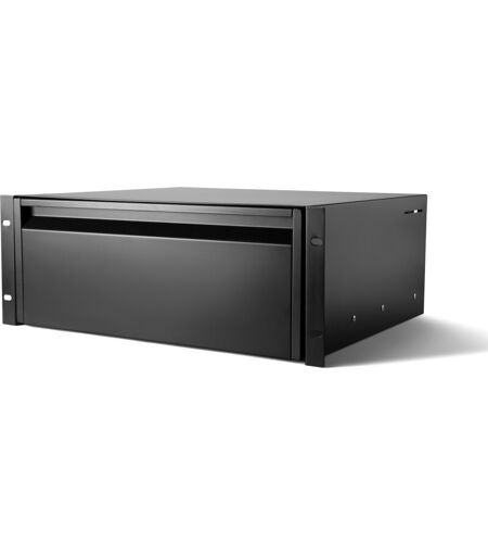 ERGO 19" Rackschublade 4 HE: Robuste 1,5 mm Stahlkonstruktion, Durchlaufender Griff zur ergonomischen Bedienung, Rastverschluss mit 1,5 kg Zugkraft, Kugelgelagerte Vollauszug-Teleskopschienen, Schnelltrennung zum Herausnehmen der Schublade, 20 kg Belastbarkeit, Die ERGO ist eine preisgünstige, stabil konstruierte Rackschublade aus 1,5 mm starkem Stahl mit leichter, ergonomischer Bedienenung. Ein versenkter Griff erstreckt sich über die gesamte Front. Das Zuschieben rastet die Schublade sicher ein, Ziehen am Griff löst den Mechanism zum Öffnen. Dafür sind 1,5 kg Zugkraft nötig. Die Rackschublade ist schwarz pulverbeschichtet und trägt 20 kg. Sie läuft leichtgängig auf kugelgelagerten Teleskopschienen, lässt sich vollständig ausziehen und komplett herausnehmen. Technische Daten: Produktart: 19" Rackschubladen, Material: Stahl, Oberfläche: pulverbeschichtet, Farbe: schwarz, Höhe Außen: 4 HE, Breite Außen: 484,6 mm, Tiefe Außen: 387,8 mm, Höhe Innen: 168,6 mm, Breite Innen: 405,9 mm, Tiefe Innen: 358,5 mm, Max. Belastbarkeit: 20 kg, Materialstärke: 1,5 mm, Gewicht: 9 kg ...