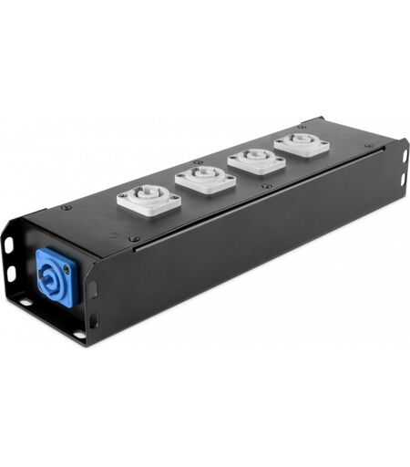 Stromverteiler 1 x Power Twist Eingang + 5 x Power Twist Ausgänge: 230 V Betriebsspannung, max. 16 A, 5 Power Twist Ausgangsbuchsen, Metallgehäuse, 2 x M10-Montagepunkte, IP-Schutzklasse 20, Der PROPORT 4PP ist ideal zur aufgeräumten und gezielten Stromverteilung auf Bühnen, an Traversen und in Equipment-Rigs. Das robustes Metallgehäuse besitzt eine Power Twist Netzeingangsbuchse und 5 Power Twist Ausgangsbuchsen, 4 davon auf der Oberseite des Verteilers. Zwei M10-Gewindeeinsätze dienen zur Aufhängung und fixen Montage. Technische Daten: Produktart: Steckdosenleisten, Bauform: nicht 19 Zoll, Anzahl Steckdosen: 1 x Power Twist IN + 3 x Power Twist OUT, Stromzuführung: Power Twist I/O, Betriebsspannung: 230 V, Max. Stromstärke: 16 A, Gehäusematerial: Metall, Farbe: schwarz, Schutzart: IP20, Breite: 297 mm, Höhe: 60 mm, Tiefe: 78 mm, Weitere Eigenschaften: 2 x M10 Innengewinde, Weitere Eigenschaften: Gummidichtkappe, Weitere Eigenschaften: Stromversorgung auf der Bühne oder im Rig, Gewicht: 0,991 kg ...