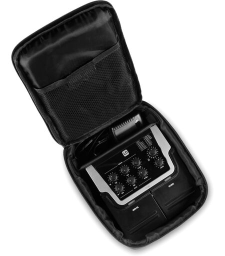 2-Kanal-Effektgerät mit Transporttasche und Netzteil: Effektgerät mit 16 digitalen Effekt-Presets in 16-Bit-Qualität, Wasserabweisende Tasche mit 8 mm Polsterung, Netztteil mit 9V DC bei 500 mA, Wenn du als Singer-Songwriter die Bühne betrittst oder ein Wohnzimmerkonzert gibst, spielt dein Sound eine entscheidende Rolle. Mit dem FX 300 SET von LD Systems bestehend aus dem Effektgerät einer Transporttasche und dem Netzteil überzeugst du ab der ersten Sekunde deines Auftritts, auch wenn nur wenig oder gar keine Zeit für den Soundcheck war. Das praktische kleine Gerät ist nicht nur ein Effektpedal für deine Stimme und dein Instrument, sondern gleichzeitig auch ein handliches 2-Kanal-Mischpult. Und das Beste daran: Die Mute-Funktionen können über die Pedale mit den Füßen oder Händen gesteuert werden. Wenn du eine Ansage machen möchtest, kannst du mit dem "FX MUTE" Pedal alle Effekte stummschalten, damit deine Stimme ohne Hall oder Delay klar und deutlich zu hören ist und alle im Raum verstehen, was du zu sagen hast. Wenn du möchtest, dass weder das Signal deines Mikrofons noch das deines Instruments die Ausgänge erreicht, genügt ein Tipp auf "MUTE ALL". Äußerst praktisch in Pausen oder am Ende deines Sets. Das FX 300 bietet 16 digitale Effekt-Presets in 16-Bit-Qualität, 2 Eingänge mit separater Gain-Einstellung und einen symmetrischen sowie einen unsymmetrischen Ausgang. Dank der +48 V Phantomspeisung am Mic-Eingang können neben dynamischen Mikros auch Kondensatormikrofone betrieben werden. Der hochohmige, rauscharme Instrumenteneingang überzeugt nicht nur mit Akustikgitarre oder Bass, sondern auch mit jedem anderen Instrument. Dank des großen Headrooms musst du dir auch keine Gedanken mehr über verzerrte Signale machen. Und selbst für den Fall, dass auf der Bühne weit und breit keine Steckdose zu finden ist, hat LD Systems an eine Lösung gedacht: Das FX 300 kann bis zu fünf Stunden lang mit einer 9-V-Batterie betrieben werden. Technische Daten: Produktart: Artist Pedal, Produktart: Artist Pedal, Produktart: Netzteile, Typ: Gepolsterte Tragetasche mit Schultergurt, Typ: Home-Recording, Typ: Live, Typ: Set, Anzahl Kanäle: 2, Gewicht: 0,89 kg, Material: Nylon 1680D, Netzanschluss: Eurostecker, Eingangsspannung: 100 - 240 V, Farbe: Schwarz, Mikrofonkanäle Mikrofonkanäle: 1, Stärke der Polsterung: 8 mm, Höhe: 90 mm, Mic-Eingangsanschlüsse: XLR/6,3 mm Klinke, Ausgangsspannug: 9 V, Breite: 180 mm, Frequenzgang Mikrofonkanal: 50 - 20000 Hz, Tiefe: 230 mm, Ausgangsstrom max.: 0,5 A, Gewicht: 0,18 kg, Verstärkungsbereich Mikrofonkanal XLR-Eingang: 42 dB, THD XLR Eingang: , Impedanz XLR Eingang: 6000 Ohm, Polarität: Innenstift minus, Länge der Zuleitung: 150 cm, Phantomspeisung: +48V DC auf XLR Input, Mikrofonkanal Klinkeneingang Eingangstyp: Elektronisch symmetriert, Verstärkungsbereich Mikrofonkanal Klinkeneingang: 20 dB, Breite: 35 mm, THD Klinkeneingang: , Mikrofon Equalizer: +5/-8dB @ 8kHz, Tiefe: 55 mm, Bedienelemente Mikrofonkanäle: FX SEND,... ...