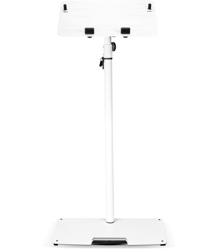 Universal Laptop-Ständer mit verstellbaren Haltepins und Stahlfuß: Einfaches und elegantes höhenverstellbares Stativ, Stabile und flache Bodenplatte aus massivem Stahl, Neigbare Ablageplatte, Verstellbare Haltepins zur Fixierung von Laptops, Tablets und anderen Gegenständen, Auch als Rednerpult und Home-Office-Lösung einsetzbar, Live- und Studiomusiker sowie Fotografen kennen es: Wohin mit dem Laptop, dem Tablet oder dem zentralen Effektgerät? Doch auch im Homeoffice kann es hilfreich sein, den Arbeitsplatz mobil zu halten, um schnell und flexibel die Umgebung zu wechseln. Gravity® bietet Dir mit dem LTST 02 W Laptop-Sta?nder genau das - eine universell einsetzbare, flexible und besonders stabile Ablage, mit der Du Dir um Dein Arbeitsgerät (ob als Musiker, Techniker, Fotograf oder Homeofficler) keine Sorgen mehr zu machen brauchst. Die große, höhenverstellbare Ablageplatte lässt sich vielseitig einsetzen und bietet genug Platz fu?r alle gängigen Laptops in den Größen 12" bis 17". Dank der vier verstellbaren und bei Bedarf abnehmbaren Haltepins liegen Laptops, Tablets oder Kompaktmischpulte fest und sicher auf der Ablage. Für eine ausreichende Belüftung der Elektronik sorgen die zahlreichen Belüftungsschlitze. Noch mehr Flexibilität bietet die stufenlose Neigbarkeit der Ablageplatte. Auf diese Weise kannst Du den LTST 02 W sowohl in vertikaler als auch horizontaler Ausrichtung verwenden - zum Beispiel, um als Redner Deine Notizen immer sichtbar zu haben. Der LTST 02 W ist ein überaus stylischer Laptop-Ständer mit reduziertem Erscheinungsbild, was in erster Linie mit seinem einzelnen Standbein und dem flachen Standfuß aus massivem Stahl zu tun hat. Im Gegensatz zu herkömmlichen Dreibeinlösungen, die mit ihrer optischen Nähe zu Mikrofon- und Lautsprecherstativen kaum außerhalb von Bühne und Studio Verwendung finden, macht der LTST 02 W auch im Rahmen von Events, Tagungen oder in Büroumgebungen eine gute Figur. Der LTST 02 W lässt sich flexibel zwischen 79 cm und 120 cm in der Höhe einstellen und somit auch auf niedrigster Stufe im Sitzen verwenden. Mit dem LTST 02 W bietet Dir Gravity® einen universalen Laptop-Ständer, der auch als flexibler Begleiter für Deine mobilen Performance-Rigs in sämtlichen Situationen überzeugt. Technische Daten: Produktart: Ständer und Stative Multimedia Equipment, Typ: Laptopständer, Material Ablage: Stahl, Material Rohre: Stahl, Oberfläche Rohre: Pulverbeschichtet, Farbe: Weiß, Breite Haltebacken: 40 mm, Breitenabstand der Haltestifte min.: 120 mm, Breitenabstand der Haltestifte max.: 425 mm, Höhenabstand der Haltestifte zu Haltebacken min.: 117 mm, Höhenabstand der Haltestifte zu Haltebacken max.: 250 mm, Breitenabstand der Haltebacken min.: 130 mm, Breitenabstand der Haltebacken max.: 360 mm, Breite Ablagefläche: 480 mm, Höhe Ablagefläche: 330 mm, Höhe min.: 790 mm, Höhe max.: 1200 mm, Transportlänge: 790 mm, Höhenverstellung: Stellschraube mit Sicherungssplint, Abmessung Standfuß (B x H x T): 565 x 20 x 330 mm,... ...