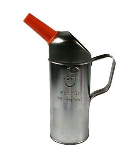 BUSCHiNG GmbH Tankstellen- und Werkstattgeräte Messkanne Flüssigkeitsmaß, 1,0 l Eigenschaften: Kapazität: 1 l Material: Weißblech Trichterausguss Prägung "Nur für Mineralöle" ...