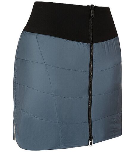Während die Aufstiege beim Skitourengehen oft anstrengend und schweißtreibend sind, wird es auf dem Gipfel oder bei der Rast schnell kalt und ungemütlich. Um nicht auszukühlen, hilft eine schnell übergeworfene Isolationsschicht, die auch Oberschenkel und Hüfte warm hält. Irmi ist ein Wenderock, der mit einer 80 Gramm ReMOCA Pad® gefüttert ist: Das synthetische Isolationsmaterial wird dabei aus recycelten Restbeständen alter Pomoca-Skitourenfelle hergestellt. Der Isolationsrock kommt im traditionellen Steppmuster – doch wer Lust auf Abwechslung hat, dreht ihn einfach um: Durch die andere Farbe und das technische Seesucker-Gewebe entsteht ein ganz neuer Look. Durch den hohen, dehnbaren Bund passt der Rock perfekt über Leggings oder Skitourenhosen. Bei Nichtgebrauch lässt er sich wiederum klein komprimieren und in seiner eigenen Tasche verstauen. Der beidseitig bedienbare Reißverschluss ist außerdem arretierbar: So bleibt der geöffnete Reißverschluss in der gewünschten Position. Die leicht geschwungenen Seitenschlitze geben dem Irmi Skirt zusätzliche Bewegungsfreiheit. An der Seite befindet sich zudem eine kleine, versteckte Tasche. Details: ReMOCA PAD® wattierter Rock Hoch taillierter elastischer Bund Packbar (in eigenem Beutel) Kleine Sicherheitsschleife Zwei-Weg Frontreißverschluss 1 Geheime Tasche mit versteckten Reißverschluss Wendbar Gesticktes Logo Magic Moment Material: LM ReMOCA Pad® R100 80g LM MeAir PFAs-Free R100 38 BS 100% Polyamid (recycelt) Farbbezeichnung: Antic Blue/Crystal Grey Die Marke LA MUNT ist Mitglied der Fair Wear Foundation. ...