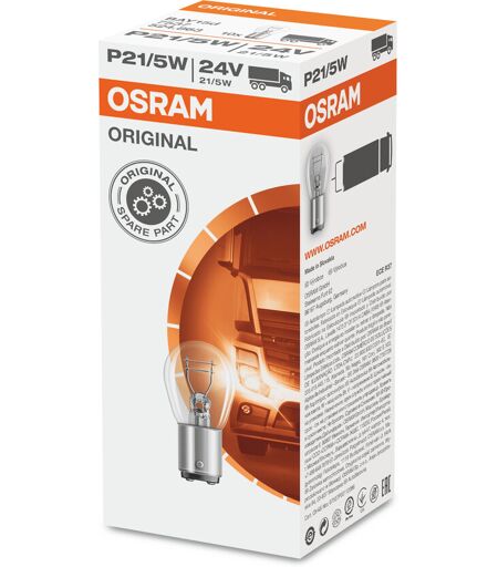 OSRAM Glühlampe, Blinkleuchte Spannung: 24: V Lampenart: P21/5W Nennleistung: 21/5: W Sockelausführung: BAY15d , OE-Nummer:HELLA:8GD 002 078-241NEOLUX®:N334NARVA:179253000BOSCH:1 987 302 524PHILIPS:13499CP ...