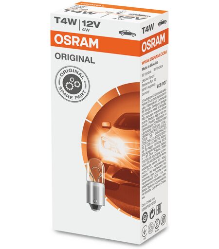 OSRAM Glühlampe, Blinkleuchte Nennleistung: 4: W Spannung: 12: V Sockelausführung: BA9s Lampenart: T4W , OE-Nummer:BOSCH:1 987 302 207HELLA:8GP 002 067-121NARVA:171313000PHILIPS:12929CPNEOLUX®:N233 ...
