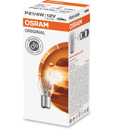 OSRAM ORIGINAL P21/4W Lampenart: P21/4W Spannung: 12: V Nennleistung: 21/4: W Sockelausführung: BAZ15d , OE-Nummer:PHILIPS:12594CPNEOLUX®:N566BOSCH:1 987 302 215HELLA:8GD 004 772-121NARVA:178813000 ...
