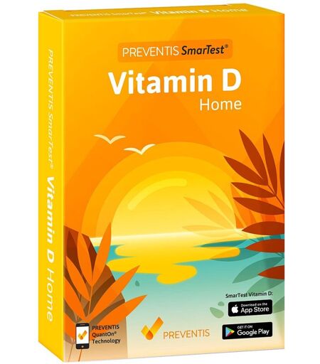 Anwendungsgebiet von Preventis Smartest Vitamin D Schnelltest BlutVitamin D ist eine Gruppe von Molekülen, die vielfältige Funktionen im Körper erfüllen. Dank der Sonneneinstrahlung wird Vitamin D in der Haut hergestellt. Zusätzlich wird es auch über die Nahrung aufgenommen – jedoch nicht in ausreichenden Mengen. 25(OH)-Vitamin D ist die Speicherform, des Vitamin D im Körper. Es macht ca. 95 % der Gesamt-Vitamin-D-Menge aus und wird daher als Marker für den Vitamin-D-Spiegel genutzt. Ergibt sich einer schwerer Vitamin-D-Mangel kann dies mit vielen gesundheitlichen Folgen in Verbindung gebracht werden: geringerere Knochendichte, Erkrankungen des Nervensystems, Herz- und Kreislauferkrankungen, Muskelkrankheiten und Diabetes. Insbesondere für Risikogruppen ist daher eine regelmäßige Überprüfung des Vitamin-D-Status empfohlen. Dazu wählen ältere Menschen, Menschen mit dunkler Hautfarbe, Säuglinge und Menschen, die sich nur wenig oder gar nicht im Freien aufhalten. Wirkungsweise von Preventis Smartest Vitamin D Schnelltest BlutDas Preventis Smartest Vitamin D Schnelltest Blut beinhaltet einen immunologischen Schnelltest, der 25(OH)-Vitamin D mithilfe von spezifischen Antikörpern nachweist, und einer Smartphone-App, die das Ergebnis des Schnelltests anhand der Farbintensität der Kontroll- und Testbande quantitativ auswertet. Das Ergebnis wird auf dem verwendeten Smartphone angezeigt und gespeichert. Wirkstoffe / Inhaltsstoffe / ZutatenDas Set beinhaltet: 1 Testkassette, 1 Kameratest-Karte, 1 Pflaster, 1 Reinigungstuch, 2 Lanzetten, 1 Kapillare, 1 PufferröhrchenDosierungAnwendugnsempfehlung von Preventis Smartest Vitamin D Schnelltest Blut: Bitte nehmen Sie sich etwa 20 Minuten Zeit, um den Test ungestört durchführen zu können. Stellen Sie sicher, dass Ihr Smartphone ausreichend geladen ist (Akkustand mindestens 20 %). Schalten Sie das Telefon und auch den Klingelton/Signaltöne während der Anwendun ...