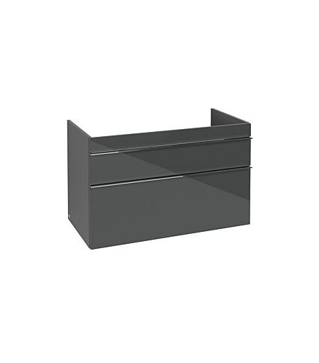 Villeroy und Boch Venticello Waschtisch-Unterschrank A92701RA 95,3 x 59 x 50,2 cm, Becken links, Griff Chrom, Glass Glossy Grey