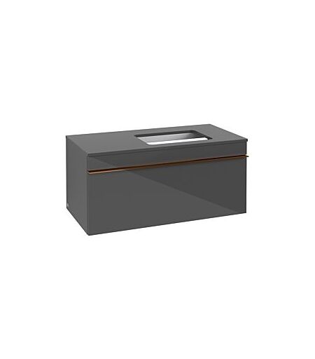 Villeroy und Boch Venticello Waschtisch-Unterschrank A94805FP 95,7 x 43,6 x 50,2 cm, Waschtisch rechts, Griff Copper, Glossy Grey
