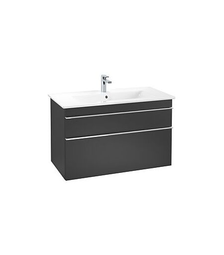 Villeroy und Boch Venticello Waschtisch-Unterschrank A92601PD 95,3 x 59 x 50,2 cm, Becken mittig, Griff Chrom, Black Matt Lacquer