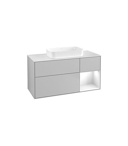 Villeroy und Boch Finion Waschtischunterschrank G711GFGJ 120x60,3x50,1cm, Regal rechts Glossy white lacquer, Light grey matt