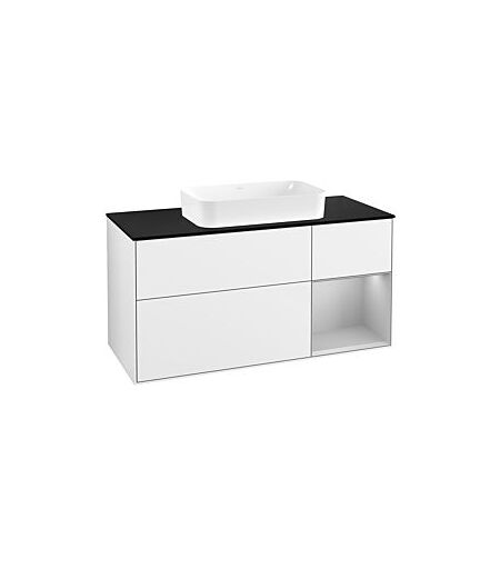 Villeroy und Boch Finion Waschtischunterschrank G712GJGF 120x60,3x50,1cm, Regal rechts Light grey matt, Glossy white lacquer