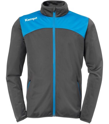 Kempa Emotion 2.0 Poly Jacke anthrazit/kempablau Details schnitttechnisches Design vorne und hinten Seitentaschen mit Reißverschluss Einfassband an den Ärmeln und am Bund gestickter Kempa-Schriftzug und K-Label-Aufdrucke Material 100% Polyester ...