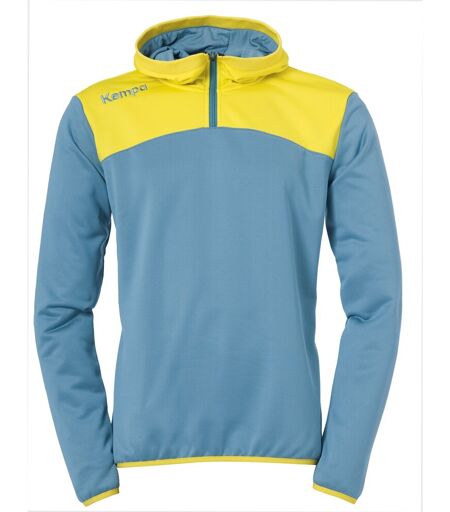 Kempa Emotion 2.0 Quarter Zip Hoody Kinder hellblau/gelb Details schnitttechnisches Design vorne und hinten 1/4 Reißverschluss vorne Kapuze mit Rippe Einfassband an den Ärmeln und am Bund gestickter Kempa-Schriftzug und K-Label-Aufdrucke Material 100% Polyester DryTech ...