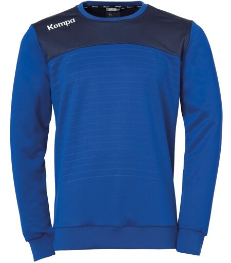Kempa Emotion 2.0 Training Top Kinder royal/marine Details Rundhalsausschnitt mit Kragenband schnitttechnisches Design vorne und hinten geprägte Linien auf der Vorderseite gestickter Kempa-Schriftzug und K-Label-Aufdrucke elastische Rippbündchen an den Ärmeln und am Bund Material 100% Polyester ComfortFit ...