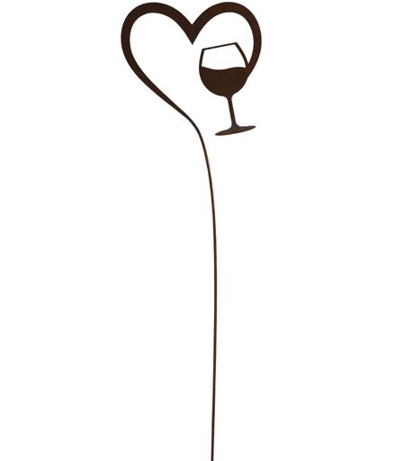 Badeko Gartenstecker Herz mit Weinglas 110 x 20 cm rostbraun