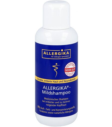 Anwendungsgebiet von Allergika MildschampooSanfte Reinigung gereizter, zu Fettschuppen und Kopfhautekzemen neigender Kopfhaut zur täglichen AnwendungWirkungsweise von Allergika MildschampooBesonders milde Zuckertenside sorgen für eine sehr gute Hautverträglichkeit.