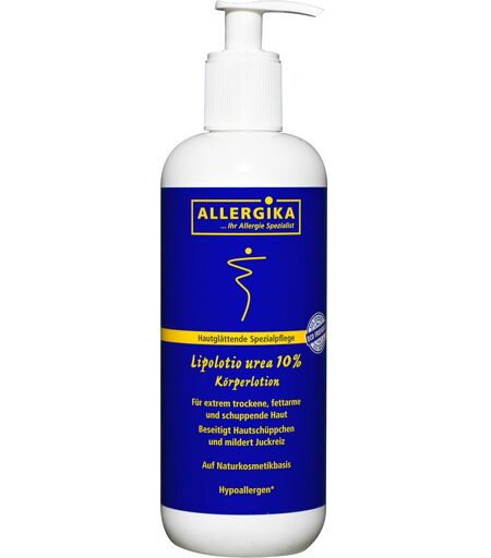 Die ALLERGIKA®-Lipolotio Urea 10% bietet eine intensive Feuchtigkeitsversorgung für sehr trockene, schuppende und raue Haut. Dank der Kombination aus 10% Urea, 5% Glycerin und Milchsäure wird die Haut optimal mit Feuchtigkeit versorgt und geglättet. Das enthaltene Urea wirkt keratolytisch und löst Schuppen effektiv, was die Lotion besonders ideal für Hauttypen mit Schuppenflechte (Psoriasis), Reibeisenhaut (Keratosis Pilaris) oder Fischschuppenkrankheit (Ichthyosis) macht. Im Vergleich zur ALLERGIKA Lipolotio Urea 5% bietet diese 10% Variante eine noch intensivere schuppenlösende Wirkung. Die spezielle Wasser-in-Öl Formulierung mit einem 41% Lipidanteil stärkt die Hautbarriere und schützt vor Feuchtigkeitsverlust. Naturkosmetik-konforme Öle sorgen für eine hervorragende Rückfettung der Haut, ohne die Poren zu verschließen. Die Lotion lässt sich leicht verteilen, zieht gut ein und hinterlässt die Haut beruhigt, gepflegt, weich, glatt und geschmeidig. Die ALLERGIKA®-Lipolotio Urea 10% ist geruchsneutral und bietet eine exzellente Hautverträglichkeit, die dermatologisch-allergologisch an sehr empfindlicher und allergischer Haut getestet wurde. Sie ist frei von Duft-, Farb- und Konservierungsstoffen, Parabenen, natürlichen Allergenen und den 328 häufigsten allergieauslösenden Stoffen der Deutschen Kontaktallergie-Gruppe (DKG). Dermatologen empfehlen dieses Produkt für die großflächige Anwendung am Körper, insbesondere bei den genannten Hauterkrankungen. Vertrauen Sie auf die intensive Pflege und den Schutz der ALLERGIKA®-Lipolotio Urea 10% für eine gesunde und geschmeidige Haut. Intensive Feuchtigkeitsversorgung und Hautglättung: Enthält 10% Urea, 5% Glycerin und Milchsäure zur intensiven Feuchtigkeitsversorgung und Hautglättung, ideal für sehr trockene, schuppende und raue Haut. Speziell für Hauterkrankungen: Besonders geeignet bei Schuppenflechte (Psoriasis), Reibeisenhaut (Keratosis Pilaris) und Fischschuppenkrankheit (Ichthyosis). Wasser-in-Öl Formulierung: Die spezielle Formulierung mit 41% Lipidanteil stärkt die Hautbarriere und schützt vor Feuchtigkeitsverlust. Naturkosmetik-konforme Öle: Bietet hervorragende Rückfettung der Haut ohne die Poren zu verschließen, lässt sich leicht verteilen und zieht gut ein. Hautverträglichkeit und Sicherheit: Geruchsneutral, exzellente Hautverträglichkeit, dermatologisch-allergologisch getestet, frei von Duft-, Farb- und Konservierungsstoffen, Parabenen, natürlichen Allergenen und den 328 häufigsten allergieauslösenden Stoffen der DKG. Von Dermatologen empfohlen. Anwendung: Morgens und abends auf dem ganzen Körper auftragen. Nicht auf offene Hautstellen auftragen. Nicht für Kinder unter drei Jahren geeignet. Inhaltsstoffe: Aqua, Octyldodecanol,Butylene Glycol, Urea,Caprylic/Capric Triglyceride, Dicaprylyl Ether, Glycerin, Cera Alba, Polyglyceryl-2 Dipolyhydroxystearate, Glyceryl Oleate,Sodium Lactate, Magnesium Sulfate, Magnesium Stearate, Lactic Acid, Tocopherol ...