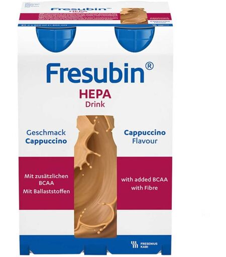 Anwendungsgebiet von Fresubin Hepa Drink Cappuccino TrinkflascheFresubin Hepa Drink Cappuccino Trinkflasche ist eine Trinknahrung mit spezieller Eiweißzusammensetzung, zum Diätmanagement bei Patienten mit bestehender oder drohender Mangelernährung, insbesondere bei akutem und chronischem Leberversagen. Lebensmittel für besondere medizinische Zwecke (bilanzierte Diät).Wirkstoffe / Inhaltsstoffe / ZutatenFresubin Hepa Drink Cappuccino Trinkflasche enthält:
