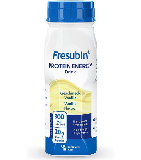 Proteinreiche Trinknahrung bei erhöhtem Energie- und Eiweißbedarf Hochkalorisch (1,5 kcal/ml) Eiweißreich (10 g/100 ml) Ohne Ballaststoffe (Schokolade: ballaststoffarm) In 6 verschiedenen Geschmacksrichtungen Laktosearm und glutenfrei Verordnungsfähig Hochkalorische Nahrung zum Trinken Lebensnotwendige Prozesse wie die Organ und Zellfunktion werden durch den Stoffwechsel aufrechterhalten, da dieser zugeführte Nährstoffe umwandelt und dem Körper verwertbar zur Verfügung stellt. Die Nährstoffe werden unter normalen Bedingungen durch die Nahrung aufgenommen. Das kann unter Umständen nicht ausreichen, da beispielsweise durch regelmäßigen Sport ein erhöhter Energieverbrauch vorliegt. Außerdem kann aufgrund von Erkrankungen und im Alter die normale Nahrungsaufnahme sogar stark beeinträchtigt bis gar nicht möglich sein. Eine dadurch entstehende Mangel ernährung hat nicht nur allgemein schwerwiegende Folgen für den Körper, sondern führt auch zu erheblichem Gewichtsverlust und fehlender Energie. Fresubin® Protein Energy DRINK dient als Nahrung zum Trinken, der Unterstützung des Diätmanagements bei bestehender oder drohender Mangelernährung sowie bei limitierter Flüssigkeitstoleranz. Insbesondere Menschen, die reichlich Fitness betreiben oder durch Stoffwechsel erkrankungen, Darmerkrankungen oder Schluckstörungen (Dysphagie) an einem Energiedefizit leiden, sind auf eine ausreichende Nährstoffaufnahme angewiesen. Reich an Eiweiß und Vitamin D Fresubin® Protein Energy DRINK ist mit zahlreichen Vitaminen und Mineralstoffen angereichert, auf die der Körper durch die Ernährung angewiesen ist. Dadurch er möglicht es dem Körper als Nahrungser gänzungsmittel oder Nahrungsersatz, wichtige Nährstoffe zuzuführen. Der benötigte tägliche Bedarf kann gedeckt und Energie zurück gewonnen werden. Fresubin® Protein Energy DRINK zeichnet sich nicht nur durch das hohe Konzentrat an Kilokalorien aus, sondern ist auch besonders reich an Eiweiß. Die hochkalorische Diät in Form von trinkbarer Nahrung ist laktosearm und glutenfrei. Die 6 verschiedenen Geschmacksrichtungen von Fresubin® Protein Energy DRINK lassen sich angenehm trinken. Fresubin® Protein Energy DRINK ist als Nahrungsergänzung anwendbar oder kann die Aufnahme auch gänzlich ersetzen. MANGELERNÄHRUNG Können dem Körper nicht ausreichend Nahrungs bestandteile zugeführt werden oder kann er diese nicht verwerten, wird von einer Mangelernährung gesprochen. Es fehlt dann an einer ausreichenden Menge an Kilo kalorien oder wichtiger Vitamine und Mineralstoffe, unter Umständen sogar beides. Folgen einer Mangel ernährung können je nach Ausprägung des Mangels schwerwiegend sein. Mitunter kann es zu allgemeiner Schwäche, Verlust der Muskelkraft, Herzrhythmus störungen, neurologischen Störungen und erhöhter Infektanfälligkeit führen. In schweren Fällen ist Unter gewicht eine Begleiterscheinung. Fresubin® Protein Energy DRINK kann dabei unterstützen, den Kalorien bedarf zu decken und gleichzeitig für eine ausreichende... ...