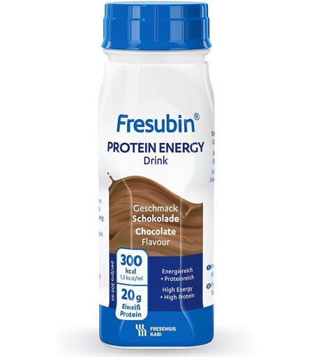 Proteinreiche Trinknahrung bei erhöhtem Energie- und Eiweißbedarf Hochkalorisch (1,5 kcal/ml) Eiweißreich (10 g/100 ml) Ohne Ballaststoffe (Schokolade: ballaststoffarm) In 6 verschiedenen Geschmacksrichtungen Laktosearm und glutenfrei Verordnungsfähig Hochkalorische Nahrung zum Trinken Lebensnotwendige Prozesse wie die Organ und Zellfunktion werden durch den Stoffwechsel aufrechterhalten, da dieser zugeführte Nährstoffe umwandelt und dem Körper verwertbar zur Verfügung stellt. Die Nährstoffe werden unter normalen Bedingungen durch die Nahrung aufgenommen. Das kann unter Umständen nicht ausreichen, da beispielsweise durch regelmäßigen Sport ein erhöhter Energieverbrauch vorliegt. Außerdem kann aufgrund von Erkrankungen und im Alter die normale Nahrungsaufnahme sogar stark beeinträchtigt bis gar nicht möglich sein. Eine dadurch entstehende Mangel ernährung hat nicht nur allgemein schwerwiegende Folgen für den Körper, sondern führt auch zu erheblichem Gewichtsverlust und fehlender Energie. Fresubin® Protein Energy DRINK dient als Nahrung zum Trinken, der Unterstützung des Diätmanagements bei bestehender oder drohender Mangelernährung sowie bei limitierter Flüssigkeitstoleranz. Insbesondere Menschen, die reichlich Fitness betreiben oder durch Stoffwechsel erkrankungen, Darmerkrankungen oder Schluckstörungen (Dysphagie) an einem Energiedefizit leiden, sind auf eine ausreichende Nährstoffaufnahme angewiesen. Reich an Eiweiß und Vitamin D Fresubin® Protein Energy DRINK ist mit zahlreichen Vitaminen und Mineralstoffen angereichert, auf die der Körper durch die Ernährung angewiesen ist. Dadurch er möglicht es dem Körper als Nahrungser gänzungsmittel oder Nahrungsersatz, wichtige Nährstoffe zuzuführen. Der benötigte tägliche Bedarf kann gedeckt und Energie zurück gewonnen werden. Fresubin® Protein Energy DRINK zeichnet sich nicht nur durch das hohe Konzentrat an Kilokalorien aus, sondern ist auch besonders reich an Eiweiß. Die hochkalorische Diät in Form von trinkbarer Nahrung ist laktosearm und glutenfrei. Die 6 verschiedenen Geschmacksrichtungen von Fresubin® Protein Energy DRINK lassen sich angenehm trinken. Fresubin® Protein Energy DRINK ist als Nahrungsergänzung anwendbar oder kann die Aufnahme auch gänzlich ersetzen. MANGELERNÄHRUNG Können dem Körper nicht ausreichend Nahrungs bestandteile zugeführt werden oder kann er diese nicht verwerten, wird von einer Mangelernährung gesprochen. Es fehlt dann an einer ausreichenden Menge an Kilo kalorien oder wichtiger Vitamine und Mineralstoffe, unter Umständen sogar beides. Folgen einer Mangel ernährung können je nach Ausprägung des Mangels schwerwiegend sein. Mitunter kann es zu allgemeiner Schwäche, Verlust der Muskelkraft, Herzrhythmus störungen, neurologischen Störungen und erhöhter Infektanfälligkeit führen. In schweren Fällen ist Unter gewicht eine Begleiterscheinung. Fresubin® Protein Energy DRINK kann dabei unterstützen, den Kalorien bedarf zu decken und gleichzeitig für eine ausreichende... ...