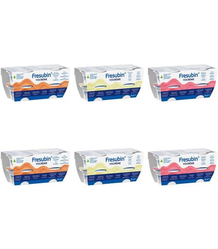 Fresubin® YOcrème Lemon Hochkalorische (1,5 kcal/g), konsistenzadaptierte Trinknahrung zum Löffeln. Ballaststoffarm, Laktosehaltig und Glutenfrei. Zutaten: Himbeere: Wasser, Zucker, Molkeneiweiß , fermentiertes Magermilchpulver, pflanzliche Öle (Rapsöl, Sonnenblumenöl), modifizierte Stärke, Säureregulator (E 270), Calciumlactat, Maltodextrin, Verdickungsmittel (E 440), Emulgatoren (E 471, Sojalecithin), Aromen, Cholinhydrogentartrat, Vitamin C, Natriumchlorid, Eisenpyrophosphat, Farbstoff (E 120), Zinksulfat, Magnesiumoxid, Niacin, Vitamin E, Manganchlorid, Pantothensäure, Kupfersulfat, Vitamin B2, Vitamin B6, Natriumfluorid, Vitamin B1, Vitamin A, Folsäure, Chromchlorid, Natriumselenit, Kaliumjodid, Vitamin K1, Natriummolybdat, Biotin, Vitamin D3, Vitamin B12. Aprikose-Pfirsich: Wasser, Zucker, Molkeneiweiß, fermentiertes Magermilchpulver, pflanzliche Öle (Rapsöl, Sonnenblumenöl), modifizierte Stärke, Säureregulator (E 270), Calciumlactat, Maltodextrin, Verdickungsmittel (E 440), Aromen, Emulgatoren (E 471, Sojalecithin), Cholinhydrogentartrat, Vitamin C, Natriumchlorid, Eisenpyrophosphat, Zinksulfat, Magnesiumoxid, Niacin, Vitamin E, Manganchlorid, Pantothensäure, Kupfersulfat, Vitamin B2, Vitamin B6, Natriumfluorid, Vitamin B1, Vitamin A, Folsäure, Chromchlorid, Natriumselenit, Kaliumjodid, Vitamin K1, Natriummolybdat, Biotin, Vitamin D3, Vitamin B12. Lemon: Wasser, Zucker, Molkeneiweiß, fermentiertes Magermilchpulver, pflanzliche Öle (Rapsöl, Sonnenblumenöl), modifizierte Stärke, Säureregulator (E 270), Calciumlactat, Maltodextrin, Verdickungsmittel (E 440), Aromen, Emulgatoren (E 471, Sojalecithin), Cholinhydrogen-tartrat, Vitamin C, Natriumchlorid, Eisenpyrophosphat, Zinksulfat, Magnesiumoxid, Niacin, Vitamin E, Manganchlorid, Pantothensäure, Kupfersulfat, Vitamin B2, Vitamin B6, Natriumfluorid, Vitamin B1, Vitamin A, Folsäure, Chromchlorid, Natriumselenit, Kaliumjodid, Vitamin K1, Natriummolybdat, Biotin, Vitamin D3, Vitamin B12. Zusammensetzung 100ml enthalten: Energie 630 kJ (=150 kcal) Eiweiß (20 Energie %) 7,5 g Kohlenhydrate (51,5 Energie % ) 19,3 g davon Zucker 17,4 g davon Laktose ≤ 3,0 g Fett (28 Energie %) 4,7 g davon gesättigte Fettsäuren 0,6 g davon einfach ungesättigte Fettsäuren 3,1 g davon mehrfach ungesättigte Fettsäuren 1,0 g Ballaststoffe (0,5 Energie %) 0,4 g Salz 0,15 g Wasser 64 ml Mineralstoffe und Spurenelemente Natrium 60 mg/2,6 mmol Kalium 165 mg/4,2 mmol Chlorid 85 mg/2,4 mmol Kalzium 240 mg/6,0 mmol Magnesium 18 mg/0,7 mmol Phosphor 95 mg/3,1 mmol Eisen 2,5 mg Zink 2,0 mg Kupfer 375 µg Mangan 0,5 mg Jodid 37,5 µg Fluorid 0,25 mg Chrom 13 µg Molybdän 18,8 µg Selen 14 µg Vitamine und sonstige Nährstoffe Vitamin A 150 mg RE Vitamin D3 2,5 µg Vitamin E 3,75 mg a-TE Vitamin K1 21 µg Vitamin B1 0,3 mg Vitamin B2 0,4 mg Niacin 3,75 mg NE Vitamin B6 0,43 mg Vitamin B12 0,75 µg Pantothensäure 1,5 mg Biotin 9,4 µg Folsäure 62,5 µg Vitamin C 18,8 mg Cholin 32 mg Verzehrsempfehlung: Mittlere Tagesdosis zur... ...
